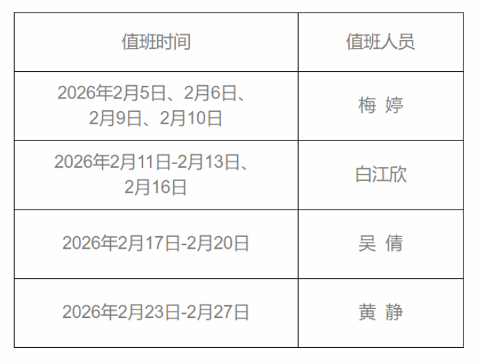 2026年2月5日(周四)至2月27日放假,2月28日(周六)正式恢复正常办公。